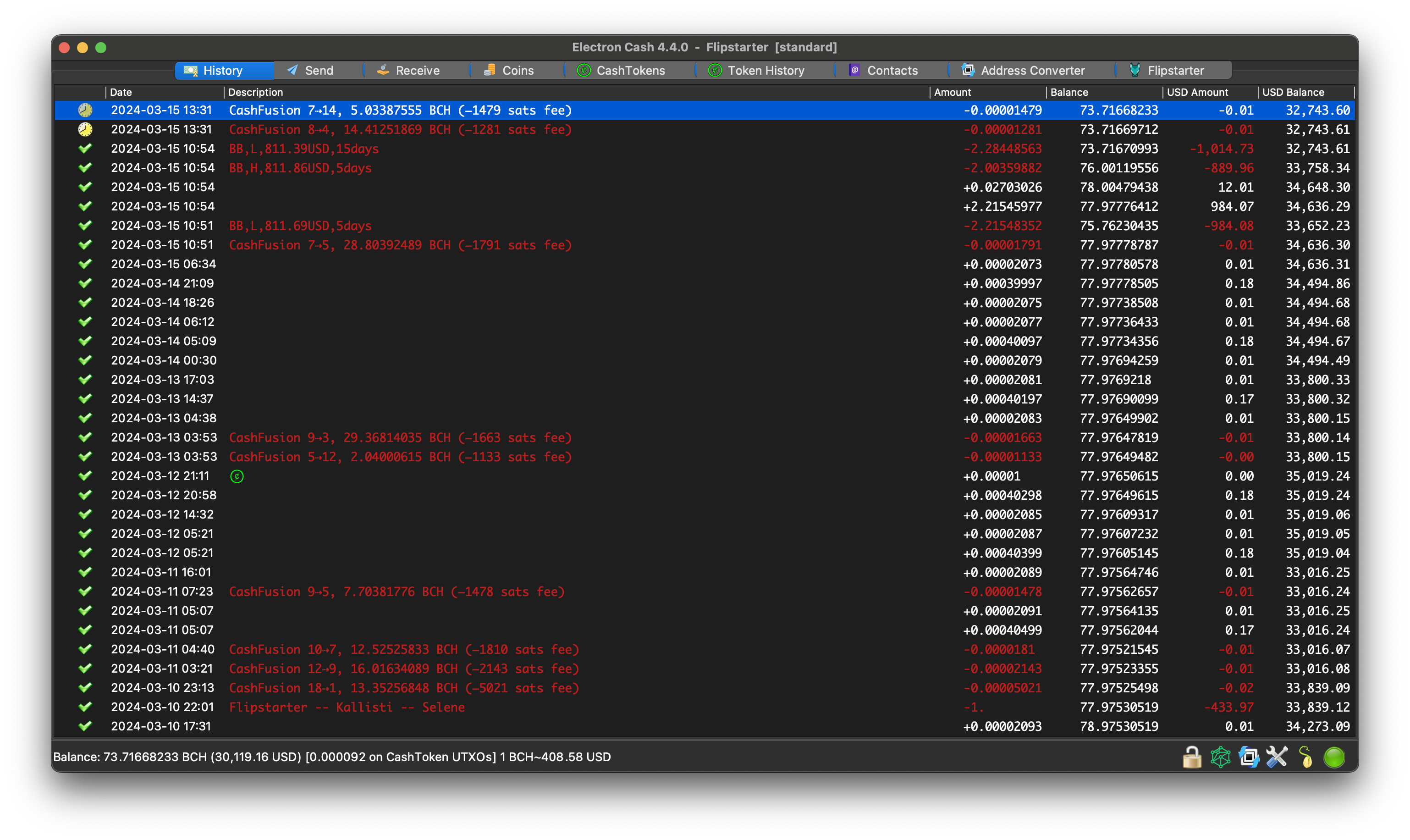 Add privacy with CashFusion coinjoins and receive funds with stealth (RPA) addresses.